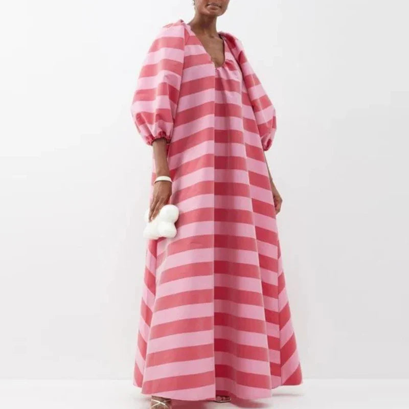 Elegant V-Neck Striped Maxi Dress for Women