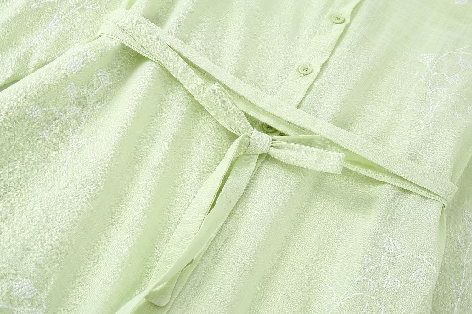 Autumn New Elegant Style Lapel Belt Single-Breasted Shirt Dress Women