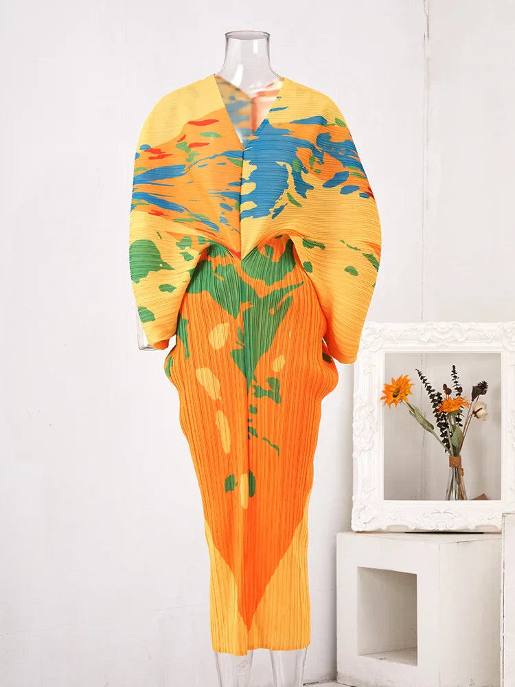 Turn heads with the Miakiye V-Neck Batwing Sleeve Pleated Stretch Dress? a chic and versatile piece designed to flatter every figure. Featuring a deep V-neckline and batwing sleeves, this dress combines elegance with comfort. The pleated design adds movement and texture, while the high-stretch fabric ensures a perfect fit that flows with your body. Its eye-catching print makes it ideal for both casual outings and special occasions. Elevate your wardrobe with this statement-making midi dress that balances sophistication and style
